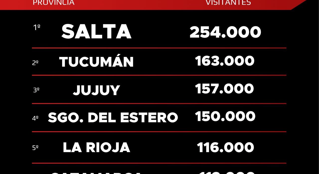 Datos oficiales confirman la posición de Salta como la provincia con mayor competitividad turística del Norte argentino. En un contexto nacional donde el turismo enfrenta restricciones por caída del consumo interno, encarecimiento de tarifas y crecimiento del turismo emisivo, Salta logró sostener niveles de actividad superiores al resto de las provincias del NOA, con una combinación de infraestructura consolidada, conectividad aérea, volumen de pasajeros y un impacto económico tangible.Según datos de la Administración Nacional de Aviación Civil (ANAC), durante el año 2024 el Aeropuerto Internacional Martín Miguel de Güemes registró 1.325.068 pasajeros, cifra que la posiciona en primer lugar en el norte argentino, por encima de Tucumán (756.541 pasajeros) y Jujuy (511.431). En términos operativos, Salta concentró 11.523 movimientos aéreos, frente a 6.320 en Tucumán y 4.253 en Jujuy. Además, lidera en cantidad de rutas aéreas directas, con el 45,4% del total regional, tanto nacionales como internacionales (incluyendo conexiones con San Pablo, Lima, Asunción y próximamente Panamá).En cuanto a infraestructura turística, los datos del Padrón Único Nacional de Alojamiento (PUNA) y del Registro Nacional de Agencias de Viajes muestran que Salta cuenta con 20.432 plazas habilitadas y 510 alojamientos registrados, mientras que Jujuy tiene 11.558 plazas y 428 alojamientos, y Tucumán 11.452 y 221, respectivamente. También encabeza en agencias de viaje, con 192 activas a julio de 2025, lo que representa el 35,6% del total regional, duplicando a Jujuy (60) y superando ampliamente a Tucumán (117).Durante la temporada de invierno, Salta registró una ocupación promedio del 60,2%, según el relevamiento hotelero diario elaborado por el Ministerio de Turismo y Deportes de Salta. La Ciudad de Salta alcanzó un 71,3% de ocupación, y destinos como Iruya (64,9%), San Antonio de los Cobres (64,1%), La Caldera (61,3%) y Cafayate (53,6%) también mostraron buenos desempeños. Estos porcentajes se alcanzaron sobre una base mucho más amplia que en otras provincias. Aunque Jujuy no publica datos, según el reporte “Jujuy en Números – Invierno 2025”, hubo una ocupación promedio del 67% pero esa cifra se calcula sobre la mitad de la capacidad instalada, con fuertes concentraciones en zonas puntuales como la Quebrada (80%) y los Valles (70%), mientras que la Puna tuvo 48% y las Yungas no presentan datos precisos. En este contexto, Salta no solo sostuvo altos niveles de ocupación, sino que lo hizo con una estructura más grande y de forma más equilibrada en todo el territorio.El impacto económico directo también fue superior. De acuerdo con el relevamiento elaborado por el área de Estadísticas del Ministerio de Turismo y Deportes de Salta, en base al gasto promedio por rubro y al volumen de turistas, la temporada invernal generó más de $128.607 millones de pesos en gasto directo en alojamiento, gastronomía, excursiones, transporte y servicios turísticos. Jujuy, según su informe oficial, reportó un impacto económico de $46.151 millones, con un gasto promedio diario de $99.054 por persona.Más allá de las cifras, Salta se diferencia por su modelo territorial. La actividad turística está distribuida en toda la provincia, con corredores activos en la Puna de los Andes, los Valles Calchaquíes, la Selva de Montaña, el Valle de Lerma, las Quebradas Andinas, el Valle Histórico y Gaucho y destinos cercanos. Esta territorialidad permite generar empleo e ingresos en comunidades alejadas de los centros urbanos, a través de productos como el turismo rural, la observación de aves, el astroturismo, la pesca deportiva, el senderismo y el enoturismo. Más de 150 experiencias registradas, 42 senderos georreferenciados y un sistema de capacitación permanente completan la base de una oferta multisegmentada y sostenible.Con políticas públicas activas como la reducción impositiva por ley para el sector turístico, Salta se convirtió en la primera provincia del país en avanzar con un esquema de alivio fiscal estructural, lo que impulsó nuevas inversiones, fortaleció la rentabilidad del sector y brindó previsibilidad a emprendedores y prestadores.El turismo del Norte avanza en conjunto, pero Salta lidera por infraestructura, conectividad, volumen, resultados y planificación. Todos los indicadores, provistos por fuentes oficiales y organismos nacionales, muestran que Salta no solo fue la más elegida durante la temporada, sino que es la que está mejor preparada para sostener un crecimiento real, territorial y sustentable en el tiempo.